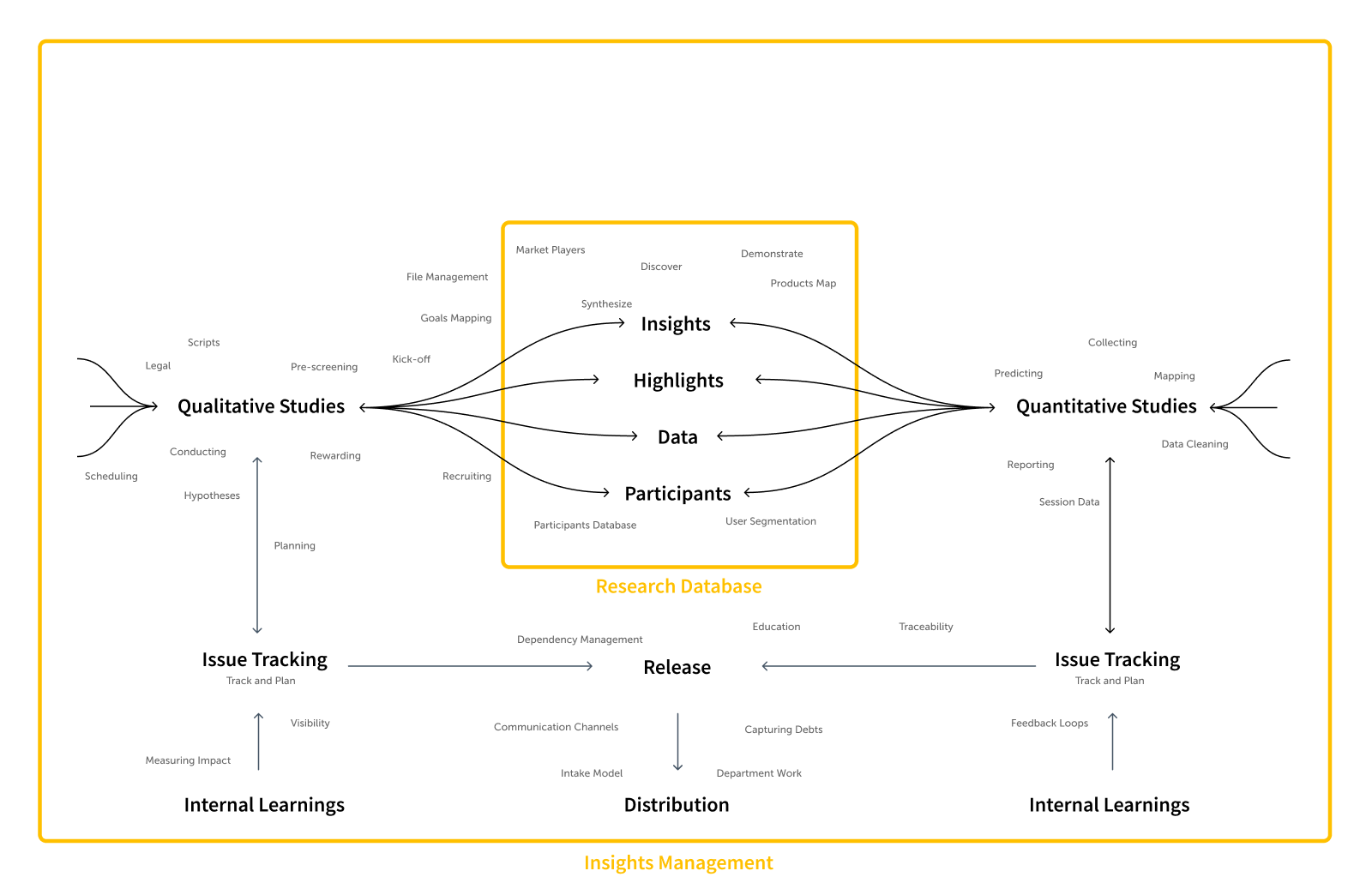 When we speak about insights and ResearchOps, there are two main layers of how we store the research insights as a part of the and support the overall process as a part of insights management.
