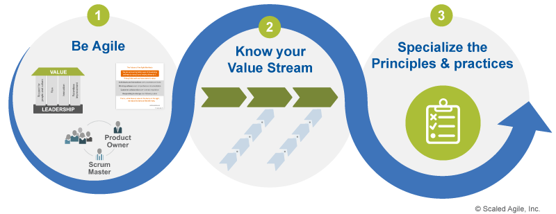 The SAFe approach to addressing the challenge of digital transformation is the ‘dual operating system’, (see Business Agility) one that leverages the stability and resources of the existing organizational hierarchy while implementing a value stream network that leverages the entrepreneurial drive still present in every organization. By organizing and reorganizing the enterprise around the flow of value instead of the traditional organizational silos, SAFe restores the second (network) operating system. It allows organizations to focus on both the innovation and growth of new ideas as well as the execution, delivery, operation, and support of existing solutions.