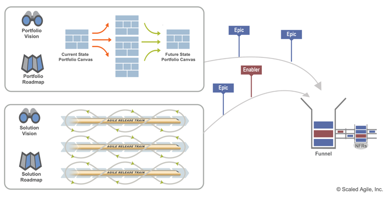 While they can arise from any source, Figure 3 illustrates how epics typically flow into the funnel: